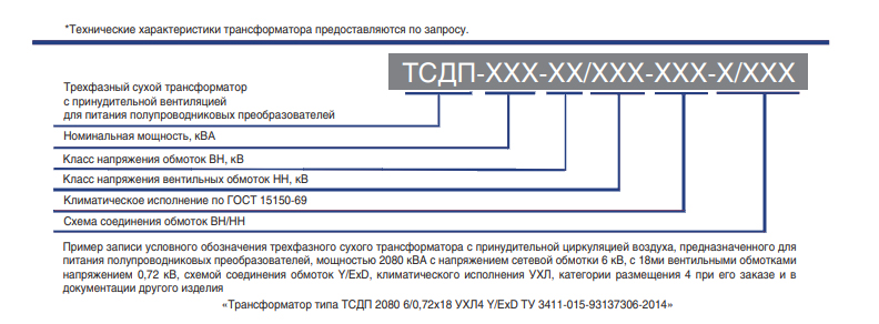 Линейка многообмоточных преобразовательных трансформаторов предназначена для питания преобразователей частоты, мощностью от 500 кВт до 5500 кВт, частотно-регулируемых электроприводах различного назначения. Трехфазный сухой фазовращающий трансформатор типа ТСДП мощностью 320-6930 кВА напряжением 6-10 кВ рассчитан на работу при частоте 50 Гц и длительной нагрузке. Трансформаторы имеют высокую надежность, пожаробезопасность. Обмотки